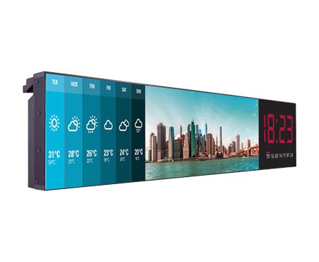 The black 86BH5C 86″ Ultra-Stretch UHD Display from LG features a native 3840 x 600 resolution for delivering detailed images and widescreen format 58:9 bar-type display. The PBP (Picture-by-Picture) feature allows you to divide a screen into four parts in landscape or portrait installations. You can edit content that consists of one video and several still images (up to 20) with SuperSign Editor. The display supports lateral tiling for 1×4 or 4×1 installations (landscape or portrait), and up to a 4×4 installation with a daisy chain configuration. The LAN daisy chain allows you to control and monitor devices and distribute content.